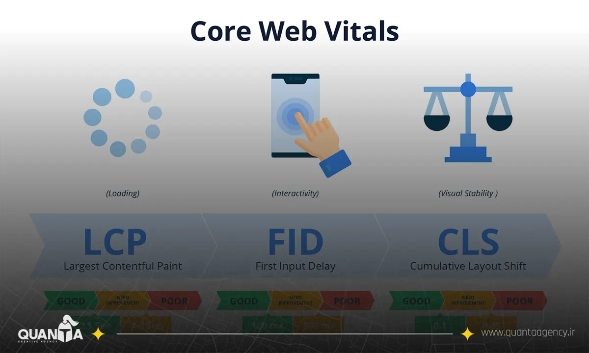 از ۱۲ مارس ۲۰۲۴، Interaction to Next Paint (INP) جایگزین FID شد و یکی از سه معیار اصلی CWV است (در کنار LCP و CLS). توصیه رسمی کروم/وب دِو: INP زیر ~۲۰۰ms را هدف بگیر. توجه داشته باش CWV «یک سیگنال در میان سیگنال ها» است، اما تجربه ی صفحه با آنچه سیستم های هسته ای می خواهند پاداش دهند همسو است.